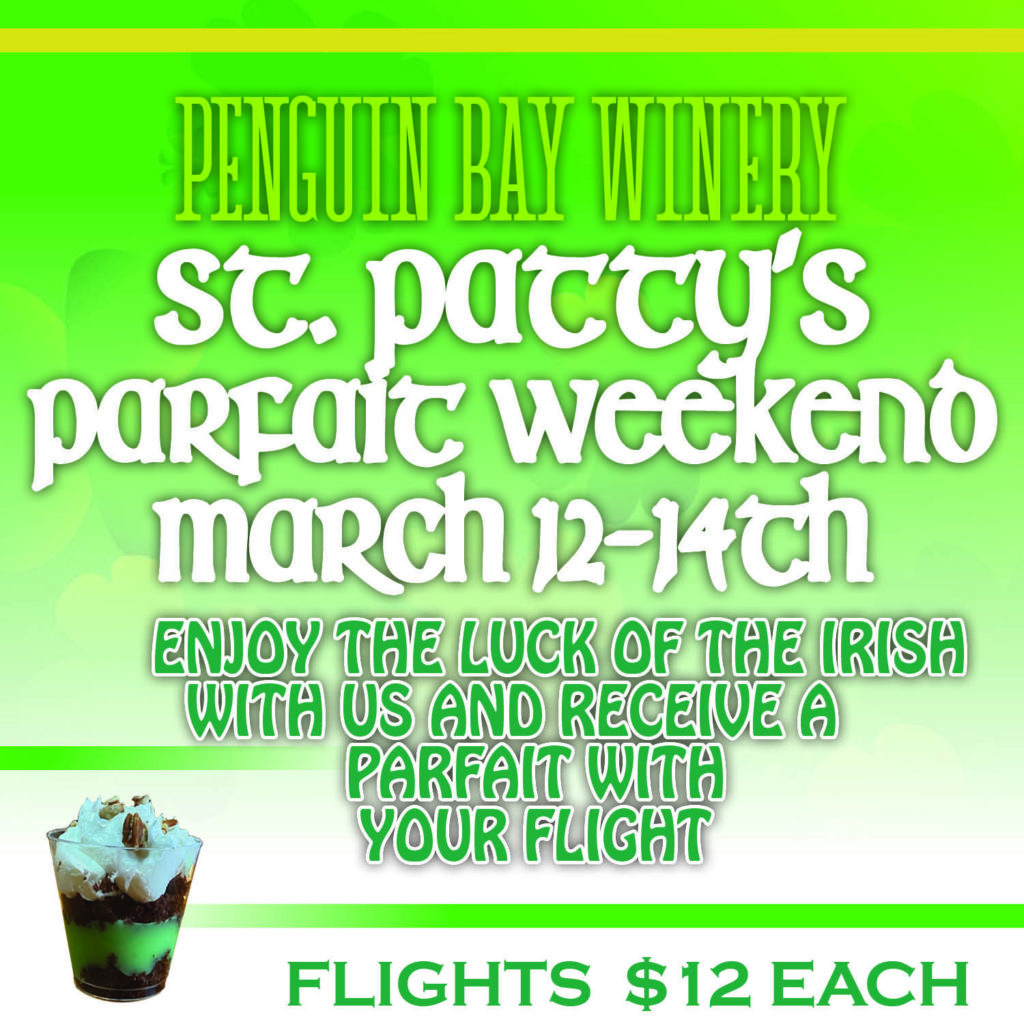 Celebrate the upcoming St Patty’s Day a little early at Penguin Bay where we will be offering Leprechaun Parfaits with any of our 6 different wine flights. Available March 12-14. […]